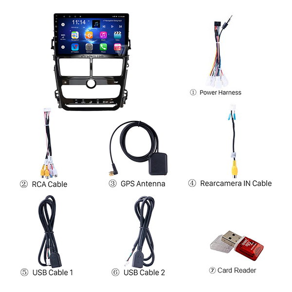 Toyota Yaris Auto Android Navigation LCD panel with big LCD Touch IPS Screen, features Bluetooth, Wi-Fi, offline GPS Maps and USB.